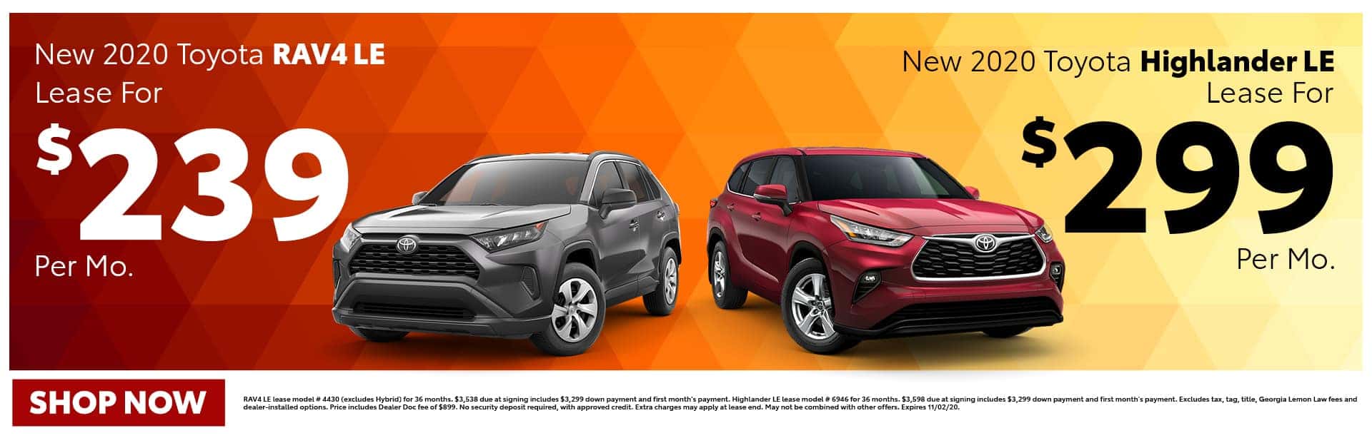 The Best Suv Lease Deals Of 2020 Don T Miss Out On These Esearches. Below are 49 working coupons for toyota suv lease deals from reliable websites that we have updated for users to get maximum savings. Find the best toyota lease deals on edmunds. Leasing toyota car with special offers, latest incentives. Toyota makes sedans, suvs, and hybrids in their signature strikingly elegant exterior design. Leasing a toyota is the perfect option for someone who doesn't want to own a car. Find the best toyota car deals, rebates and incentives for october 2020 on new cars at u.s. Lease a toyota using current special offers, deals, and more. Practically every vehicle in toyota's lineup has finance and lease deals this month. Find the best toyota lease deals on chr, camry, corolla, highlander. Learn about leasing offers including term save money by checking out lease offers near you on toyota suvs like the 2020 toyota rav4 and 2020 toyota highlander.